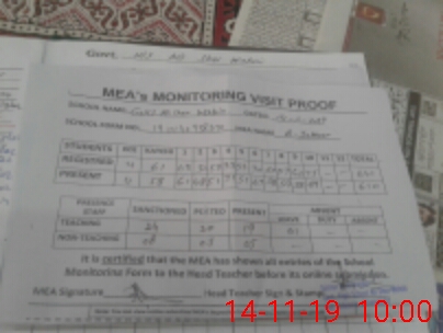 | Attendance Register | Head Teacher | MEA with School | Visit Proof |