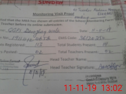 | Certified that this School was Inspected by the Undersigned MEA/DMO Today and the Information Stated Above is as Per Record. | |||||