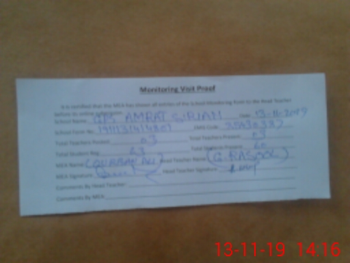 | Attendance Register | Head Teacher | MEA with School | Visit Proof |