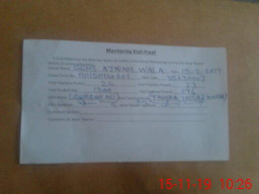 | School Visited by School Health & Nutrition Supervisor (No. of Visits) | 1 | Name1: | Amjid Ali Shahzad | Name2: | |