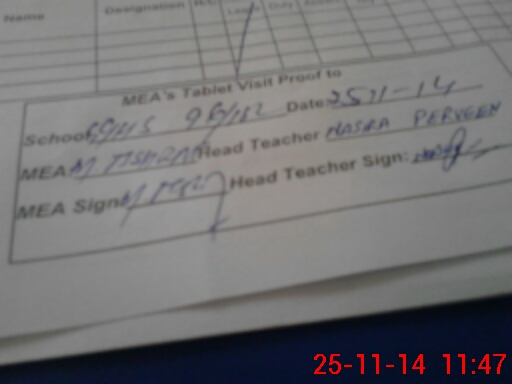 | Attendance Register | Head Teacher | MEA with School | Visit Proof |