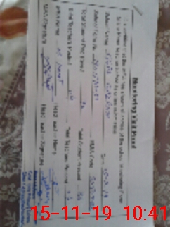| Monitoring Date: 15-11-2019 | Start Time: 15-11-2019 09:18 AM | End Time: 15-11-2019 10:45 AM | Name of MEA: Mu**** Ha**** BN**** 32 | |