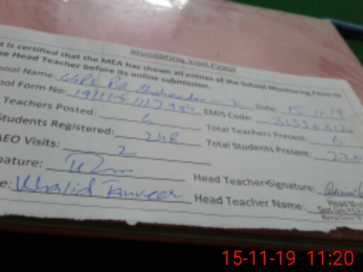 | EMIS Code: 31330612 | Name of School: GGPS PIR SHAHIDAN NO.2 | |||