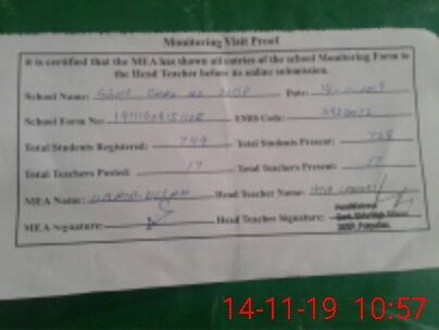 | Attendance Register | Head Teacher | MEA with School | Visit Proof |