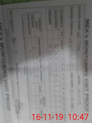 | Certified that this School was Inspected by the Undersigned MEA/DMO Today and the Information Stated Above is as Per Record. | |||||