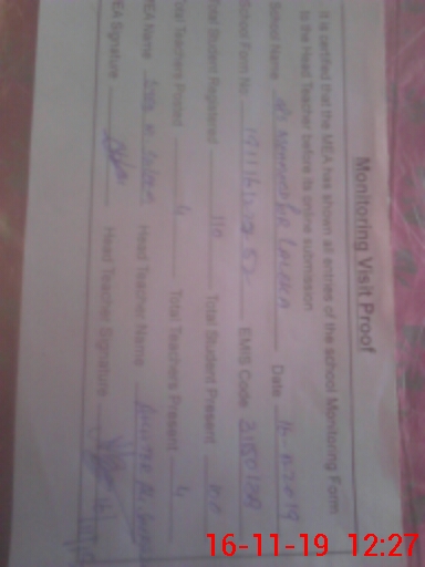 | Certified that this School was Inspected by the Undersigned MEA/DMO Today and the Information Stated Above is as Per Record. | |||||