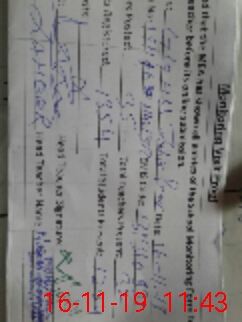 | Monitoring Date: 16-11-2019 | Start Time: 16-11-2019 10:36 AM | End Time: 16-11-2019 11:47 AM | Name of MEA: Za**** Ah**** | |
