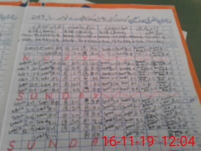 | CNIC | Full Name | Designation | R/C | Absence During Last Calender Month |