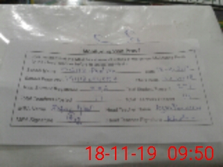 | Monitoring Date: 18-11-2019 | Start Time: 18-11-2019 09:17 AM | End Time: 18-11-2019 09:50 AM | Name of MEA: Za**** Iq**** BN**** | |
