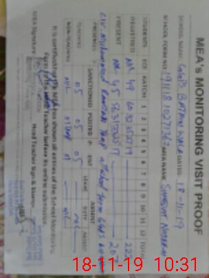 | Monitoring Date: 18-11-2019 | Start Time: 18-11-2019 09:25 AM | End Time: 18-11-2019 10:34 AM | Name of MEA: Sh**** Na**** | |