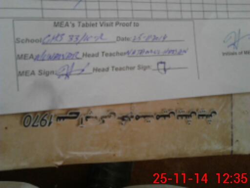 | Attendance Register | Head Teacher | MEA with School | Visit Proof |