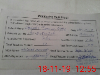 | Monitoring Date: 18-11-2019 | Start Time: 18-11-2019 10:53 AM | End Time: 18-11-2019 12:57 PM | Name of MEA: NA**** AH**** BN**** | |