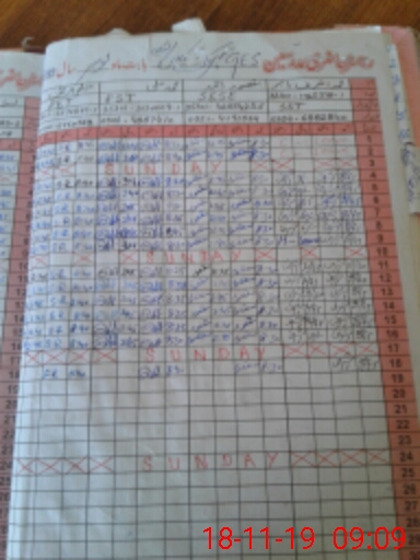 | CNIC | Full Name | Designation | R/C | Absence During Last Calender Month |