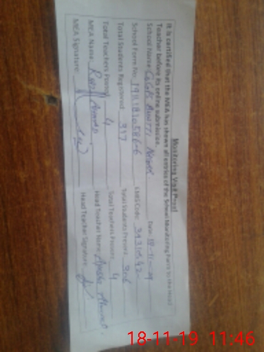 | Certified that this School was Inspected by the Undersigned MEA/DMO Today and the Information Stated Above is as Per Record. | |||||