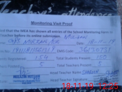 | EMIS Code: 36130731 | Name of School: GPS MIRZAN PUR | |||