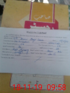 | School Visited by School Health & Nutrition Supervisor (No. of Visits) | 1 | Name1: | Abid | Name2: | |