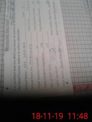 | Monitoring Date: 18-11-2019 | Start Time: 18-11-2019 10:30 AM | End Time: 18-11-2019 11:50 AM | Name of MEA: Za**** Hu**** | |