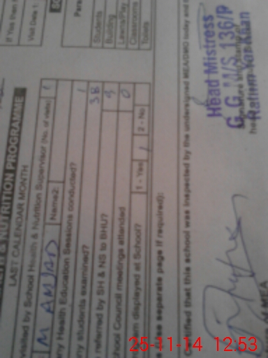 | School Visited by School Health & Nutrition Supervisor (No. of Visits) | 1 | Name1: | M Amjad | Name2: | |
