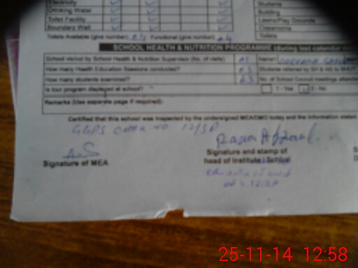 | Certified that this School was Inspected by the Undersigned MEA/DMO Today and the Information Stated Above is as Per Record. | |||||