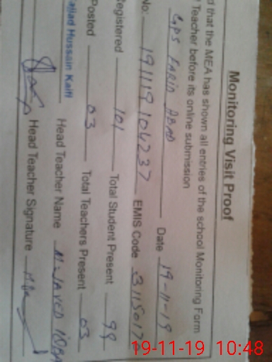 | EMIS Code: 31150170 | Name of School: GPS FARID ABAD | |||