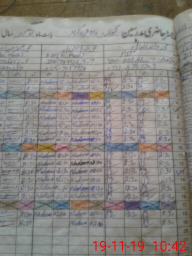 | CNIC | Full Name | Designation | R/C | Absence During Last Calender Month |