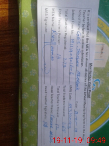 | Certified that this School was Inspected by the Undersigned MEA/DMO Today and the Information Stated Above is as Per Record. | |||||