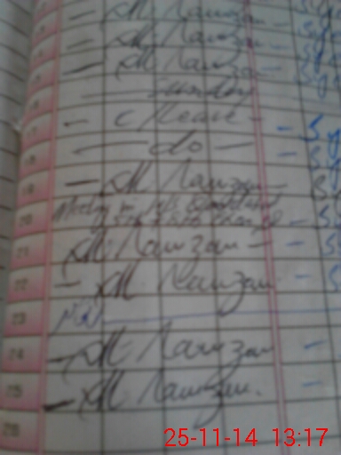 | CNIC | Full Name | Designation | R/C | Absence During Last Calender Month |
