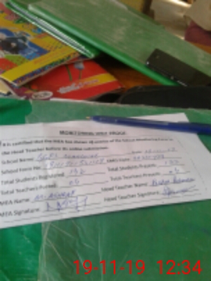 | Attendance Register | Head Teacher | MEA with School | Visit Proof |