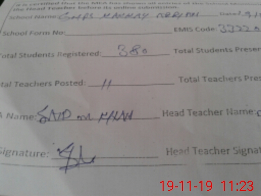 | Attendance Register | Head Teacher | MEA with School | Visit Proof |