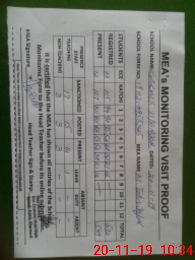 | Attendance Register | Head Teacher | MEA with School | Visit Proof |