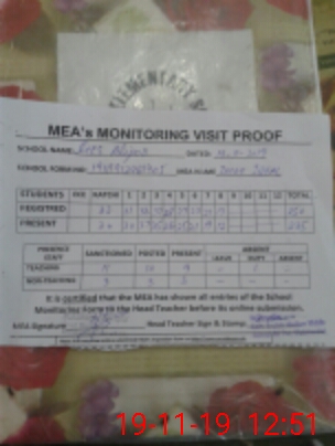 | Attendance Register | Head Teacher | MEA with School | Visit Proof |