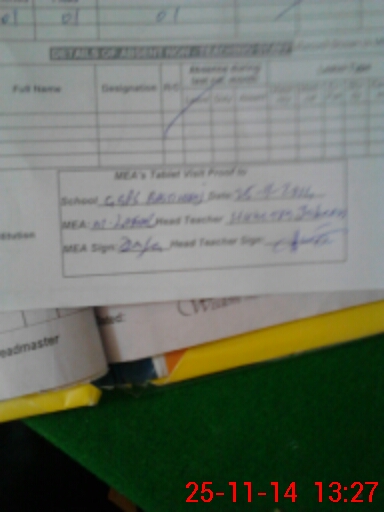 | Attendance Register | Head Teacher | MEA with School | Visit Proof |