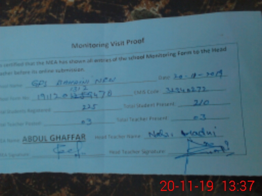 | Certified that this School was Inspected by the Undersigned MEA/DMO Today and the Information Stated Above is as Per Record. | |||||
