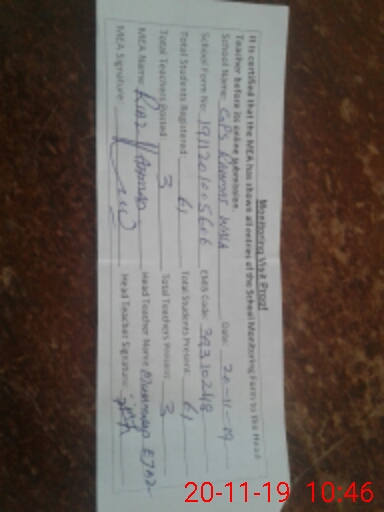 | Attendance Register | Head Teacher | MEA with School | Visit Proof |