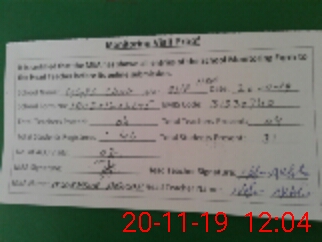 | Attendance Register | Head Teacher | MEA with School | Visit Proof |