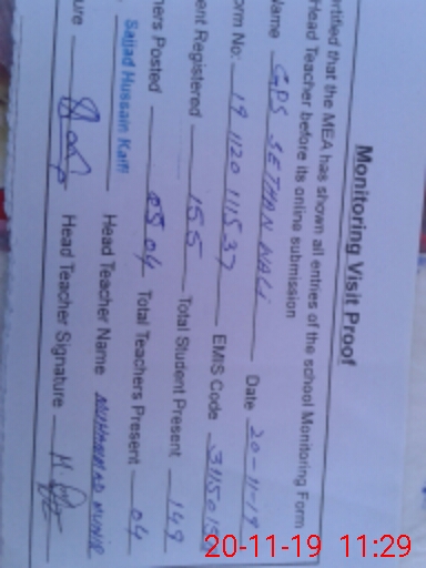 | EMIS Code: 31150158 | Name of School: GPS SETHANA WALI | |||
