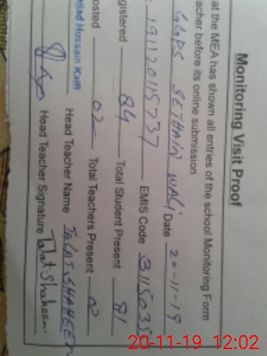 | EMIS Code: 31150355 | Name of School: GGPS SETHAN WALI | |||