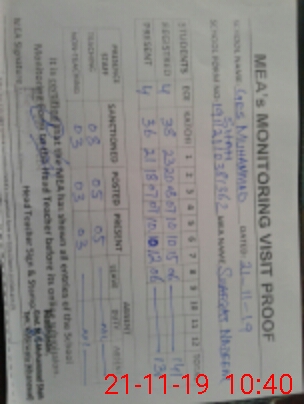 | EMIS Code: 36410058 | Name of School: GES MUHAMMAD SHAH, SARAI SIDHU | |||