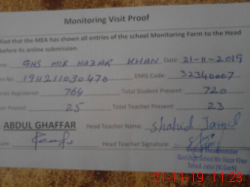 | EMIS Code: 32340007 | Name of School: GHS MIR HAZAR KHAN | |||