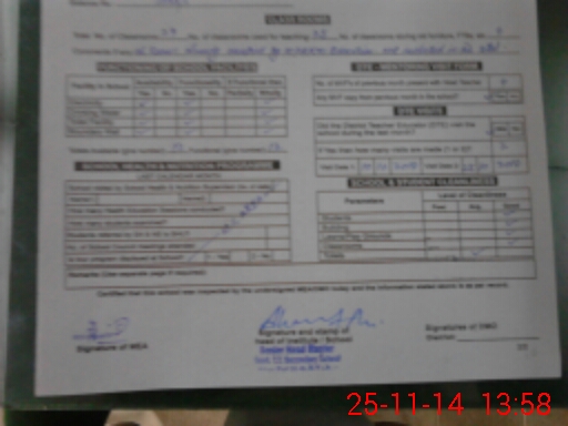 | Total no. of Classrooms: 29 No. of Classrooms Used for Teaching: 25 No. of Classrooms Storing Old Furniture, FTBs, etc: 4Comments if Any: Six rooms already occupied by Dy DEO M education Not included in this total |