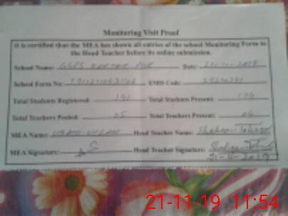 | Attendance Register | Head Teacher | MEA with School | Visit Proof |