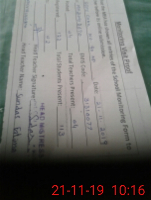 | Monitoring Date: 21-11-2019 | Start Time: 21-11-2019 09:12 AM | End Time: 21-11-2019 10:16 AM | Name of MEA: Za**** Hu**** | |