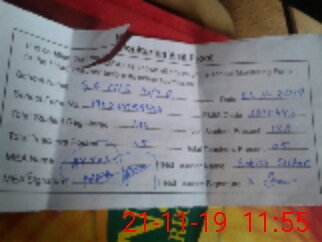 | Monitoring Date: 21-11-2019 | Start Time: 21-11-2019 10:58 AM | End Time: 21-11-2019 11:55 AM | Name of MEA: M.**** HA**** BN**** | |