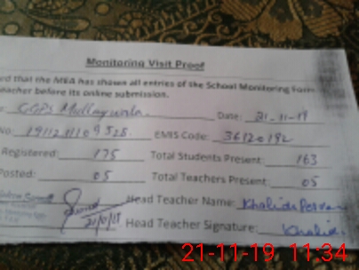 | Certified that this School was Inspected by the Undersigned MEA/DMO Today and the Information Stated Above is as Per Record. | |||||