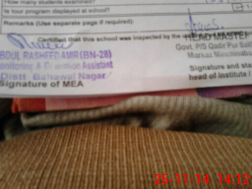 | Certified that this School was Inspected by the Undersigned MEA/DMO Today and the Information Stated Above is as Per Record. | |||||