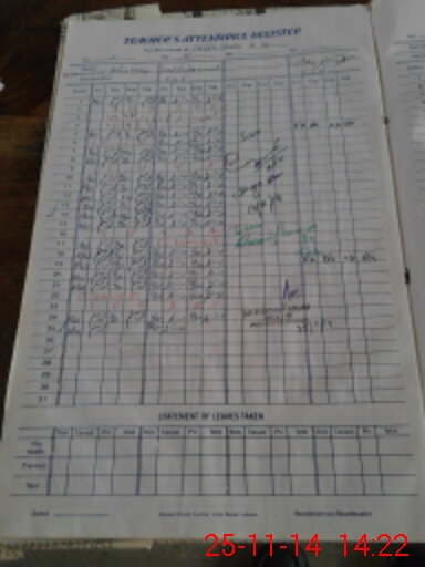 | CNIC | Full Name | Designation | R/C | Absence During Last Calender Month |