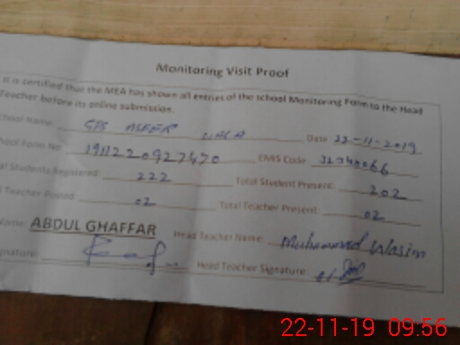 | EMIS Code: 32340066 | Name of School: GPS ASEER WALA | |||