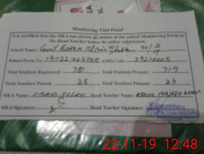 | Certified that this School was Inspected by the Undersigned MEA/DMO Today and the Information Stated Above is as Per Record. | |||||