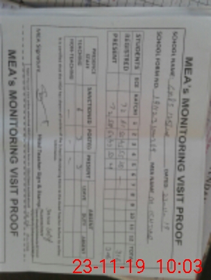 | Monitoring Date: 23-11-2019 | Start Time: 23-11-2019 09:38 AM | End Time: 23-11-2019 10:05 AM | Name of MEA: M.Is**** (S**** 03**** | |
