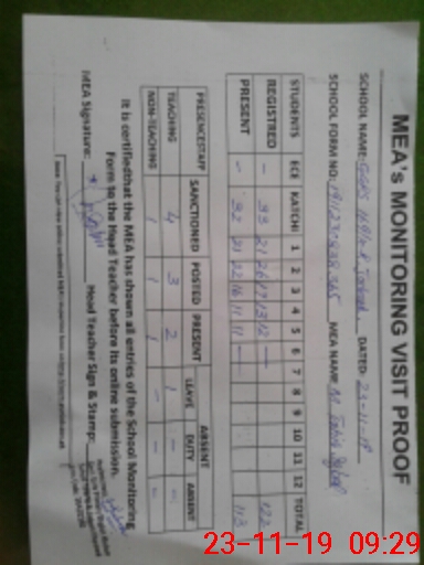 | Monitoring Date: 23-11-2019 | Start Time: 23-11-2019 08:38 AM | End Time: 23-11-2019 09:30 AM | Name of MEA: M.Ta**** Iq**** (S**** | |